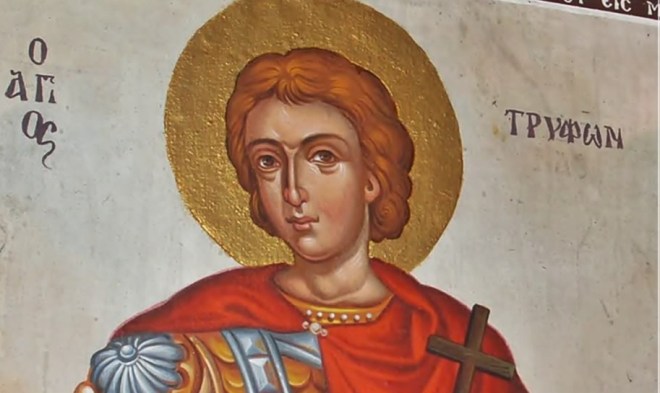 În vremuri grele pentru religia creștină, când cultul liturgic se desfășura în smerenia catacombelor și a mormintelor martirilor, a primit mucenicia și un tânăr frigian, Trifon.